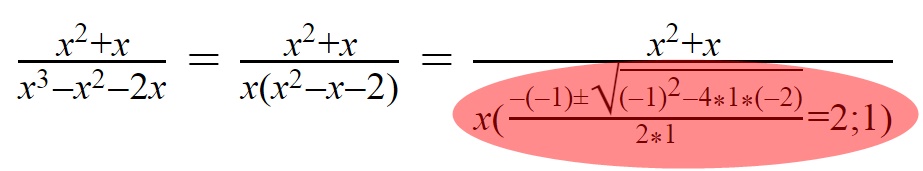 N/D = (x2+x) / (x3 -x2-x) = x(x+1) / x(x+1)(x-2) = simplificamos = x / x(x-2).