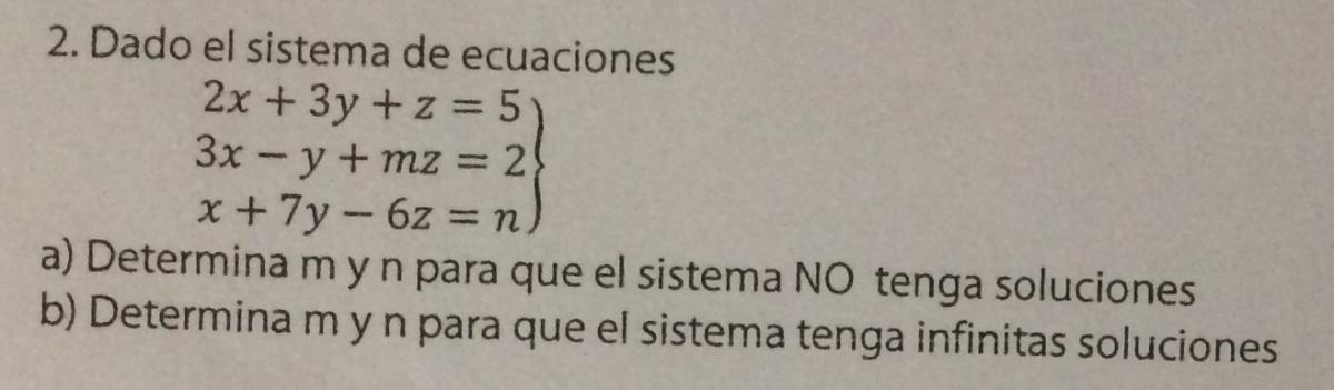 b) Si n ≠ 8 tenemos que el sistema es incompatible y no tiene solución (que es el caso que se pide en el inciso a) del enunciado).