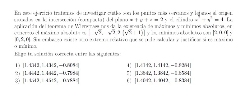 Además, el punto P cumple dos condiciones a la vez, ya que pertenece al plano y al cilindro, por lo que planteamos dos funciones diferenciables de restricción: