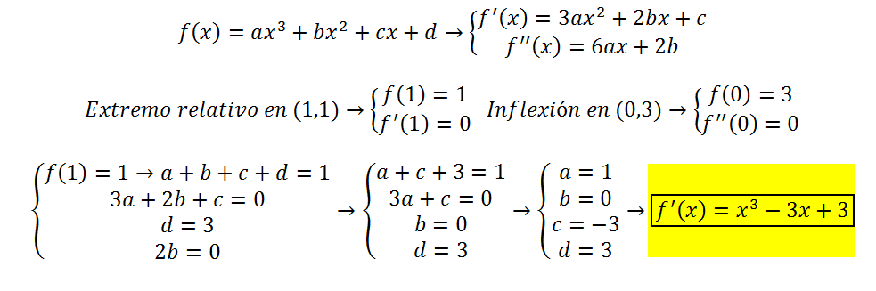 con la expresión de su derivada primera; f ' (x) = 3ax2 + 2bx + c,
