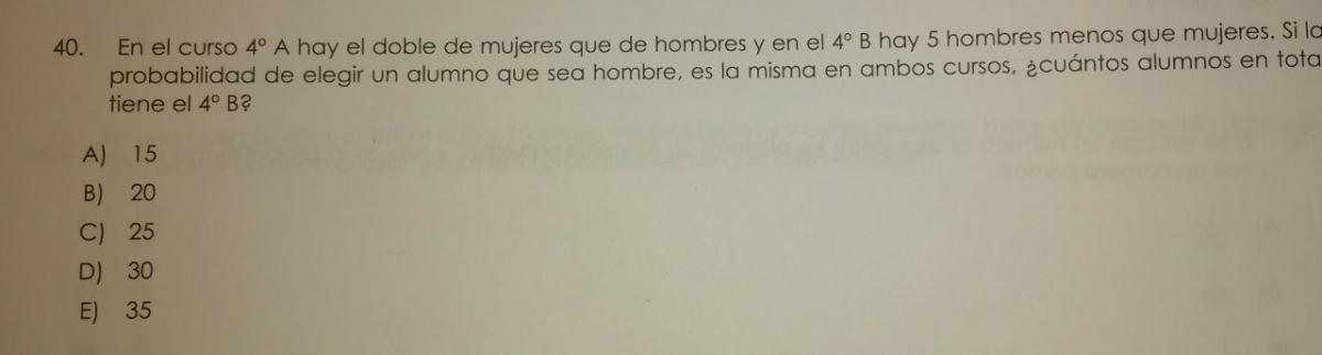M = 10, de donde tenemos: H = 10 - 5 = 5, y la cantidad total de alumnos de 4° B queda: N = 15.