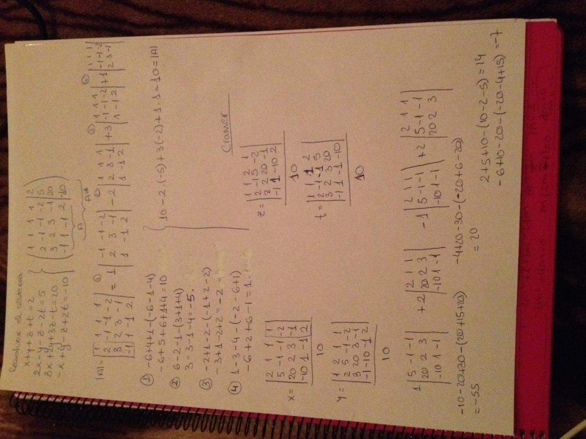 Si planteas el sistema como una matriz y a, b, c son los términos de la matriz ampliada: