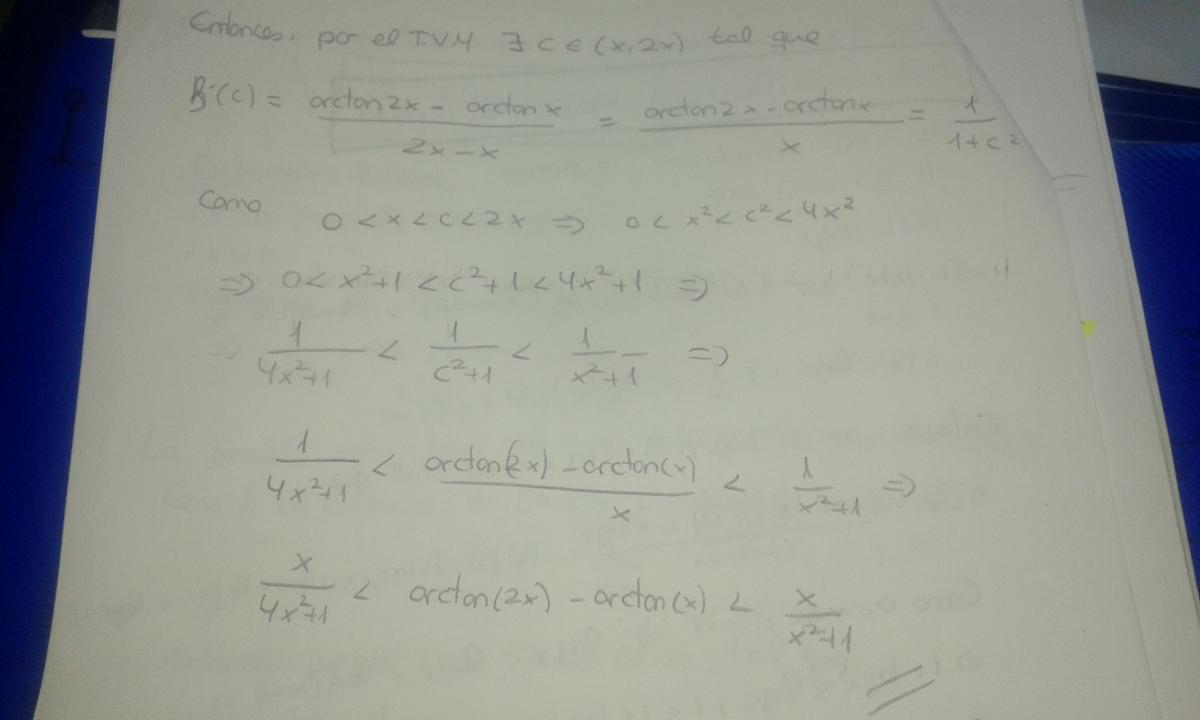Luego, vamos a la llamada (1), para justificar cómo quedó el denominador de la expresión del argumento del límite: