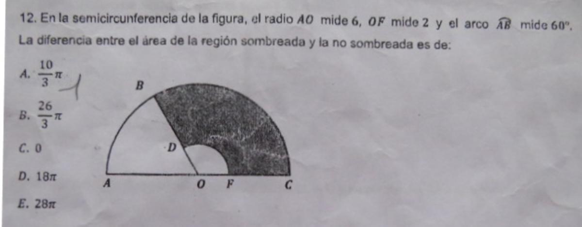 Ahora calculamos el área SOMBREADA, como ATOTAL = ASOMBREADA + ASIN.SOMBREAR; ASOMBREADA = ATOTAL- ASIN.SOMBREAR = 18π - 22π/3 = (54π - 22π)/3 = 32π/3