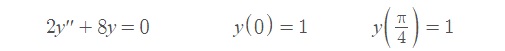 Luego tenemos las dos condiciones iniciales: 1) y(0) = 1, y 2) y(π/4) = 1.