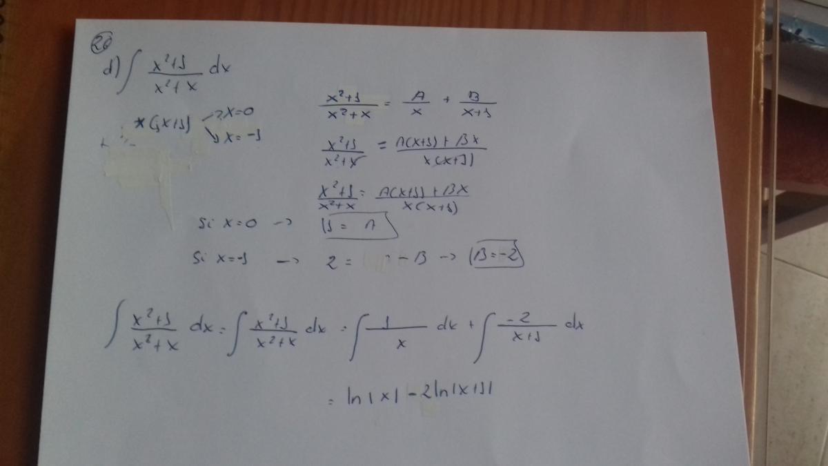 f(x) = (x2 + 1)/(x2 + x) = (x2 + 1) / x(x + 1) = ( (x2 + x) + (- x + 1) ) / x(x + 1) = ( x(x + 1) + (-x + 1) ) / x(x + 1) = distribuimos el denominador =