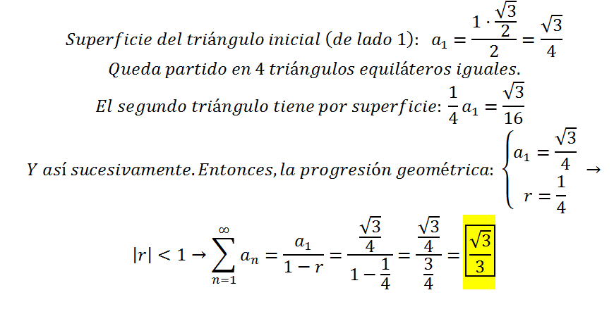 Hola unicoos. Estoy con el tema de series numericas en analisis. Me piden resolver este ejercicio. Como el area de un triangulo equilatero es √3/4 * lado ^2 he deducido que la serie tambien es asi. A partir de aqui ya no se que hacer.