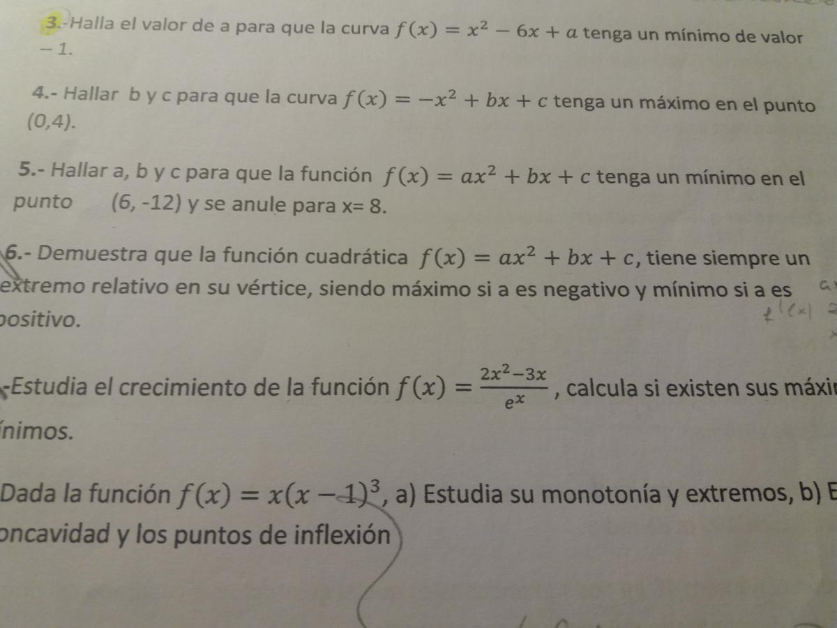b) si a es negativo, tenemos que la derivada segunda es negativa y, por lo tanto la función es cóncava hacia abajo en todo punto, y por lo tanto el punto crítica corresponde a un máximo.