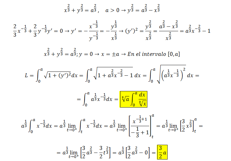 a)Demuestre que la longitud de curva C definida, en el primer cuadrante esta dada por s=a^(1/3)de la integral definida de 0 hasta a de dx/x^(1/3)