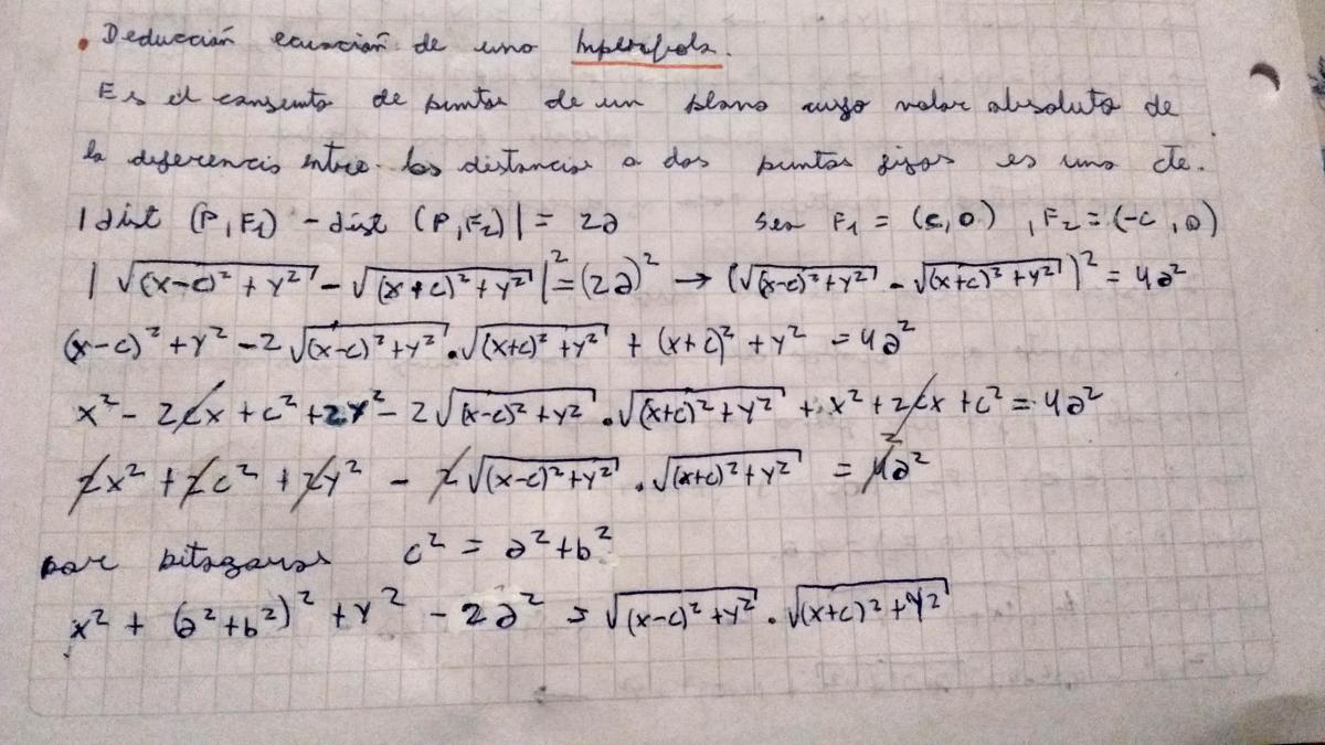 Tengo una duda en la deducción de la ecuación de una hipérbola, en los libros que estuve viendo toman la definición de hipérbola con valor absoluto pero a la hora de plantear la deducción no lo tienen en cuenta ¿por que no se puede tener en cuenta ?