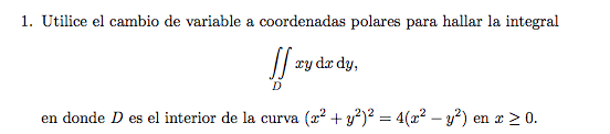 I = ∫∫Dxydxdy = ∫∫D rcosθrsenθrdrdθ = ∫∫D r3cosθenθdrdθ, integramos para r y queda: