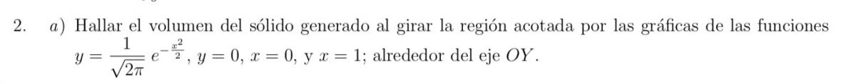 V1 = π ∫ (1 - 0)2 dy, para evaluar entre 0 y e-1/2/√(2π).