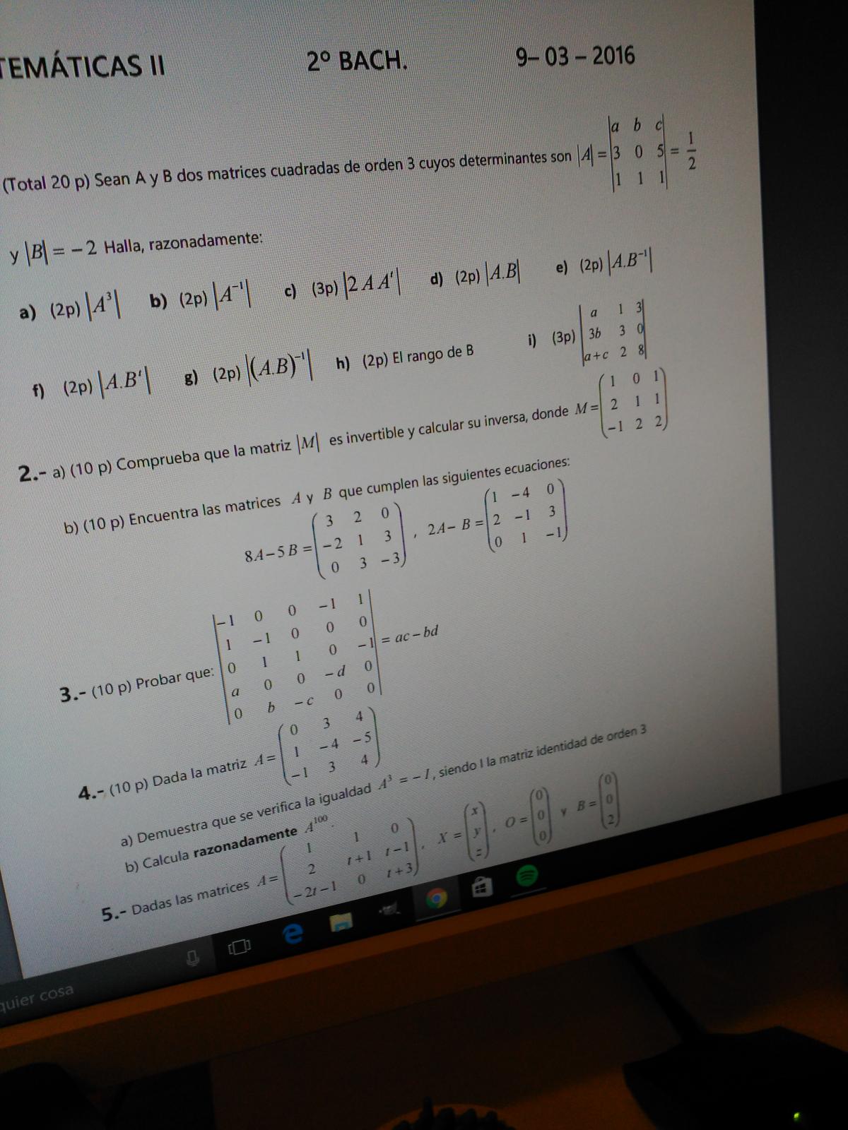En el ejercicio 3 hay que hacer ceros por debajo de la diagonal principal aplicando gauss, y después aplicar las propiedades de los determinantes, que nos dice que, si tenemos ceros por debajo de la diagonal principal, el valor de ese determinante será, el producto de todos los miembros de la diagonal principal? Gracias