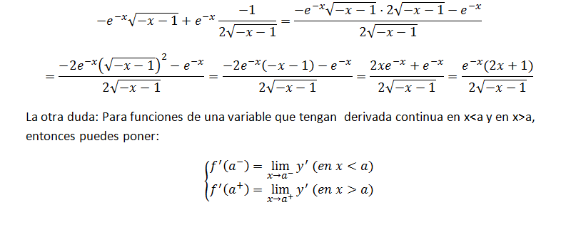 Por otro lado, ¿podría explicarme cómo ha pasado de la primera derivada al resultado? Es decir: