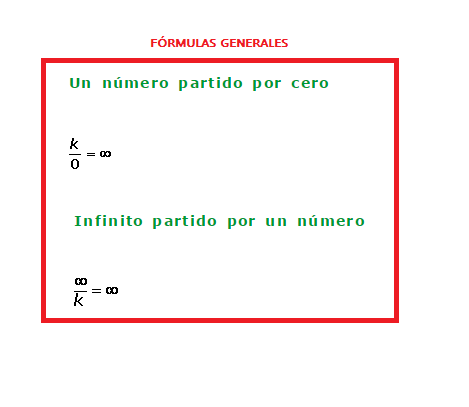 2) nº/0= ∞, simplemente (también se aplica el criterio de signos, es decir, -nº/0= -∞, nº/0-= -∞)