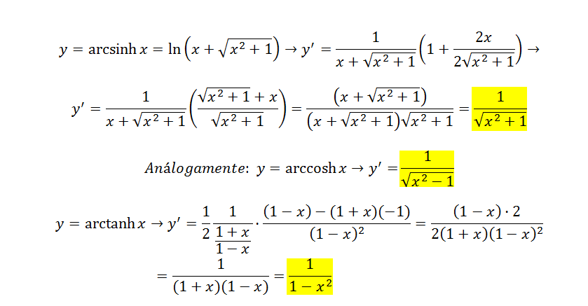 hiperbólicas inversas y = arg sinh x; y = arg cosh x; y = arg tanh x. A
