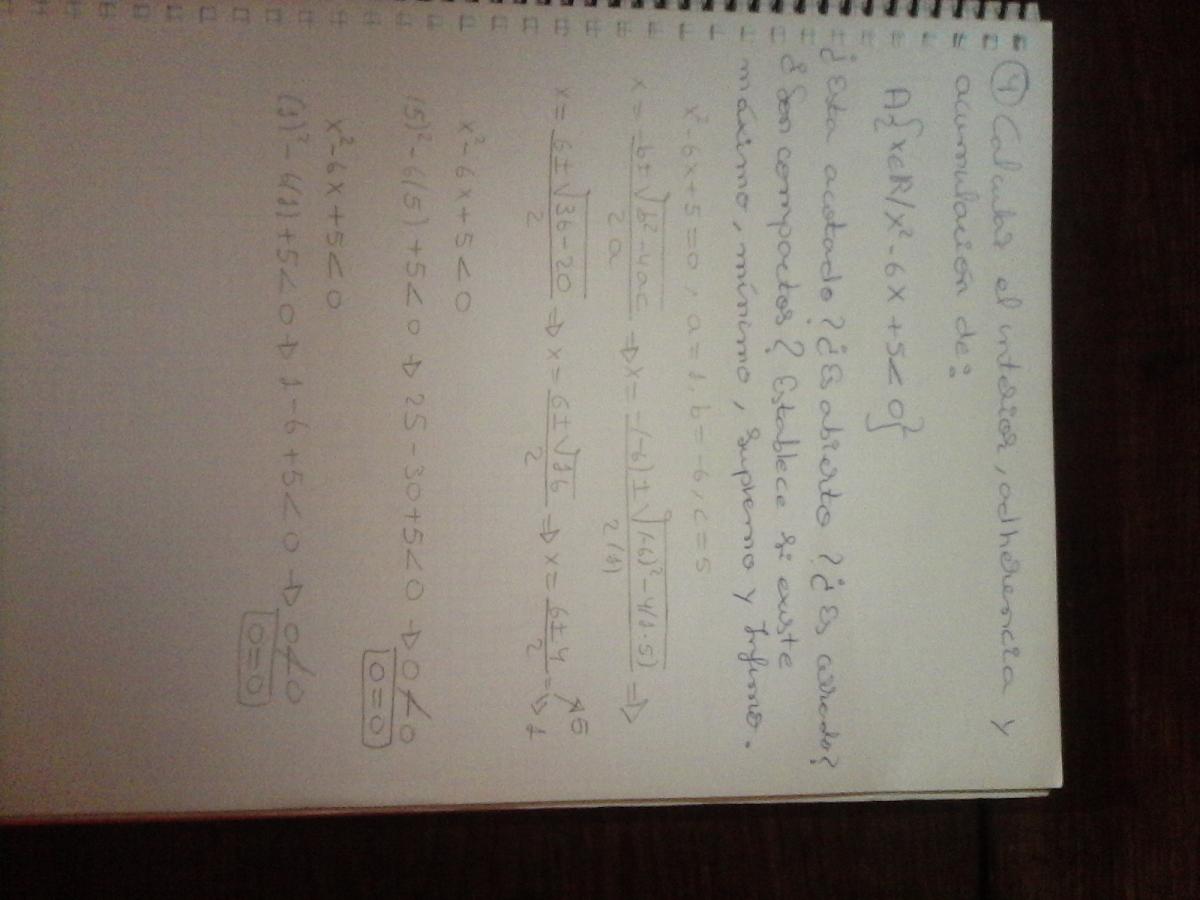 Muchas gracias, me podría hacer un gran favor y pasarme unos apuntes que tenga usted o recomendarme un buen libro de esto.Esque los mios son muy malos y usted explica tan bien que si usted tuviera unos apuntes de todo esto de topología de puntos interiores, adherentes y etc y si me los pasará, se lo agradezería mucho.