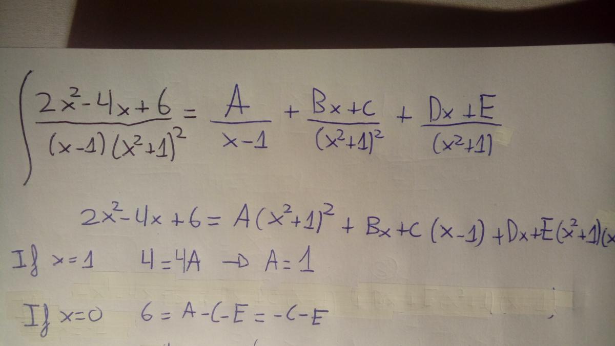 a) 2 / (x - 1)(x2 + 1) = a/(x - 1) + (bx + c)/(x2 + 1) = ( a(x2 + 1) + (bx + c)(x - 1) ) / (x - 1)(x2 + 1)