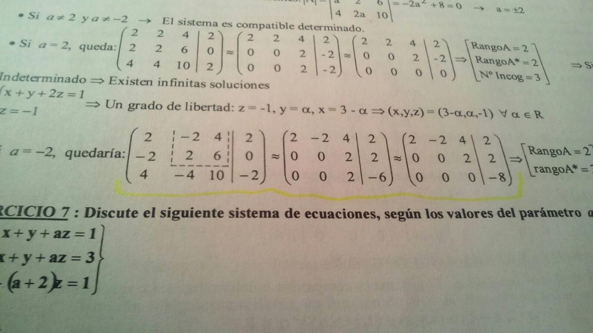 2b) a = 1, reemplazamos y la matriz ampliada del sistema queda:
