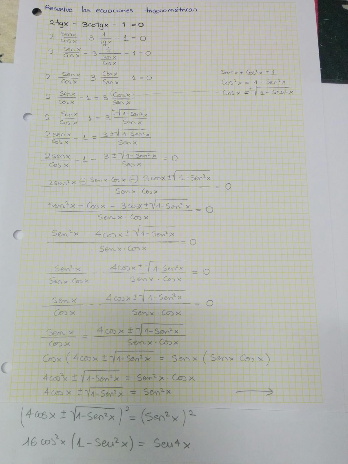 Hola buenos días necesito ayuda en el siguiente problema trigonométrico, me quedé atascado casi al final del ejercicio y no consigo resolverlo, dice lo siguiente: