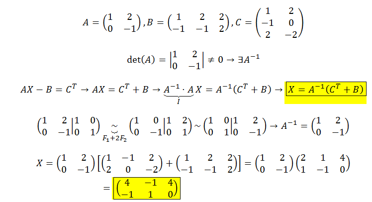 I2X = A-1(Ct + B), luego resolvemos el primer miembro (recuerda que la matriz identidad es neutra para le producto) y queda: