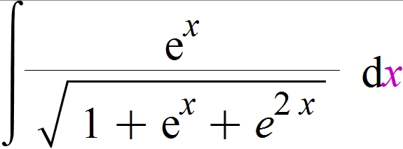 Debes comenzar con la sustitución (cambio de variable): w = ex, de donde tienes: dw = exdx, luego sustituyes y queda: