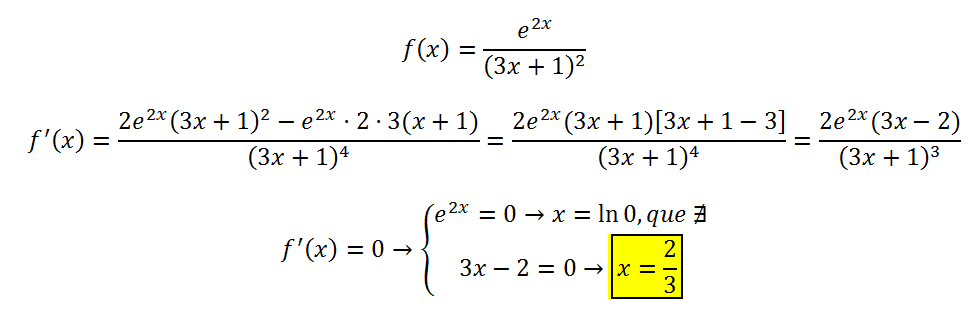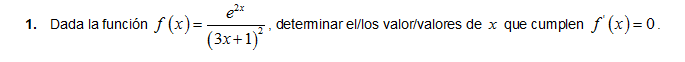 y para buscar puntos notables en el interior del intervalo, planteamos la expresión de la función derivada: