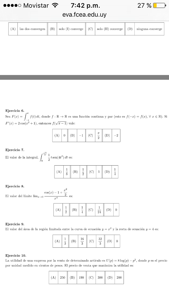 6) Debes tener en cuenta la propiedad de las funciones pares: ∫ f(t)dt (entre -x y 0) = ∫ f(t)dt (entre 0 y x).