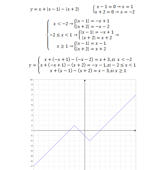 Hola ! Cómo se representa esto ? Y = X + /X-1/ - /X + 2/ ?