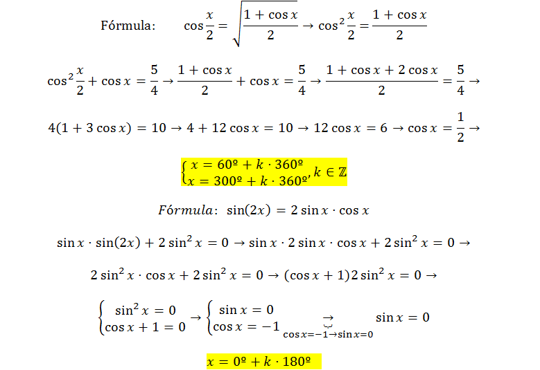 cos2(x/2) + 2cos2(x/2) - 1 = 5/4, hacemos pasaje de término, reducimos términos semejantes y queda