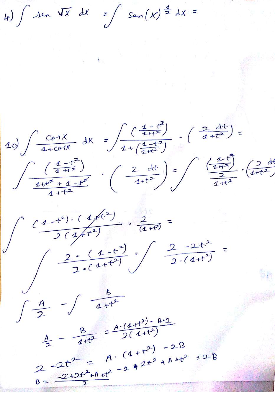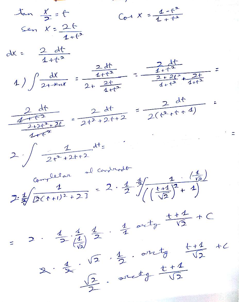 Hola, ¿me podrían decir cómo se hace la primera integral sustituyendo las fórmulas trigonométricas que que empleo en la segunda? Y en la segunda, otra más en la que me quedo atascado y nada, no llego a la solución. Gracias