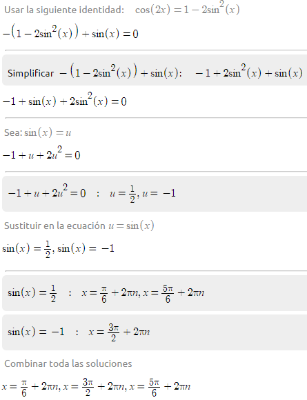 Tengo que hacer el cálculo de un área definida entre las dos funciones f(x)=sin(x) y g(x)=cos(2x). Debo encontrar el punto de corte de la función pero no sé como encontrar el cero de la función de dos funciones trigonomètricas.