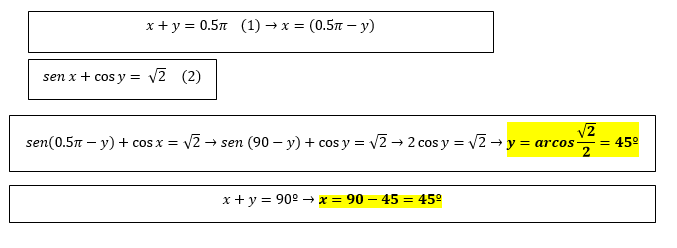 Me podríais ayudar con este sistema de ecuaciones trigonométricas: x + y = π/2