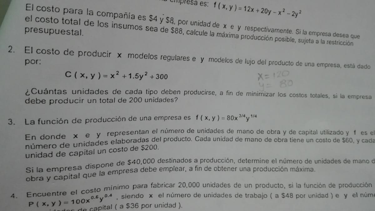 Si debe producir 200 unidades, x+y=200... y=200-x..