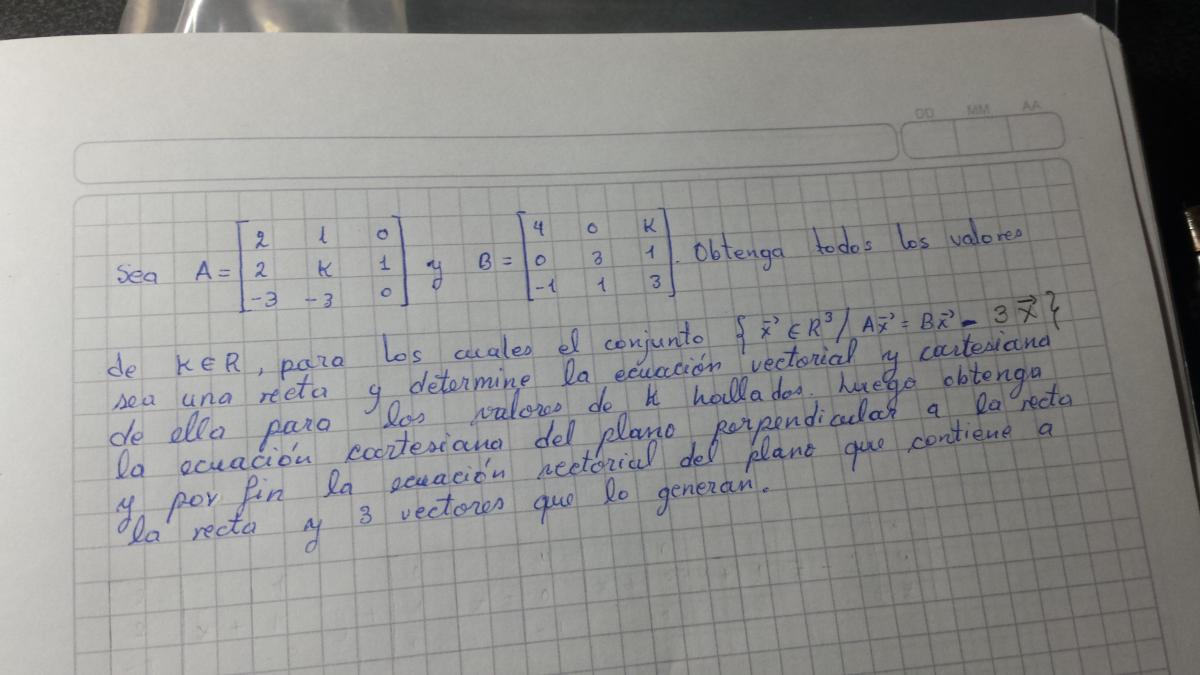Hola Amigos, estoy por dar la otra semana el parcial de Algebra Lineal y he estado realizado varios ejercicios, pero me he topado con el siguiente que realmente no se como plantearlo para resolverlo. Si alguien me podría ayudar le estaría agradecido.