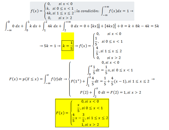 ¿Alguien me podría ayudar a resolver el siguiente ejercicio de cómo pasar de una función de densidad a una de distribución?
