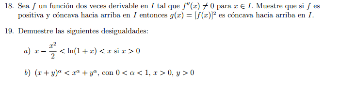 g ' ' (x) = 2( f ' (x) )2 + 2f(x) * f ' ' (x) > 0, por lo que tenemos que la función g es cóncava hacia arriba (observa que los dos términos de la expresión son positivos, porque son productos de factores positivos).