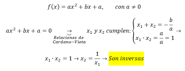 el polinomio de segundo grado en x con coeficientes reales, ax^2+bx+a, verificar: