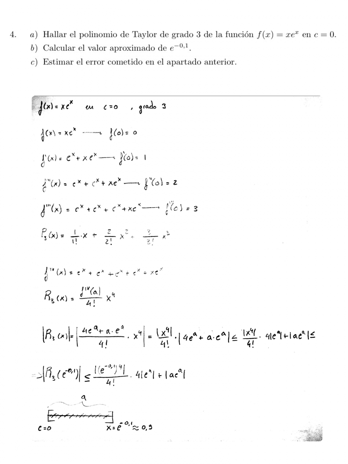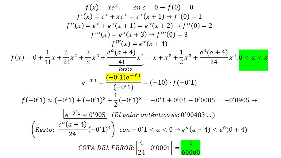 R3(-0,1) = ( fIV(c)/4! )(-0,1)4 = ( (4+c)ec/24 )(-0,1)4, con -0,1 ≤ c ≤ 0.