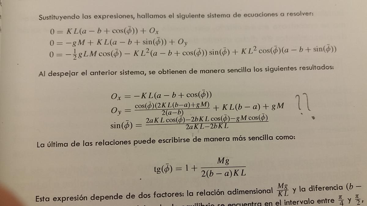 KL².senθ (a-b+cosθ) -KL² cosθ.senθ = -(1/2)gLMcosθ + KL² cosθ. a -KL² cosθ.b