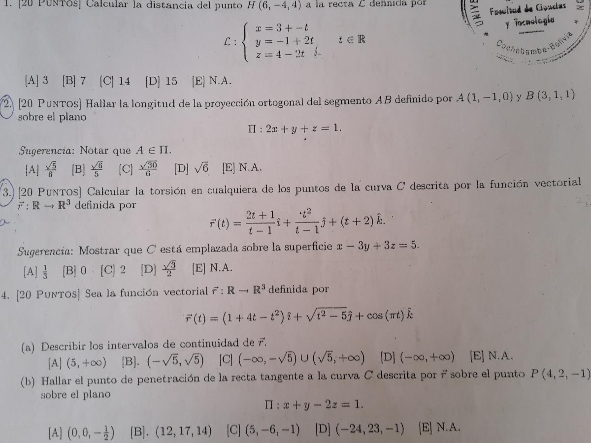 Buenas tardes, me podrian dar la idea de como hacer el problema 2 y 3, lo que no entiendo es como puedo sacar la proyeccion de un vector en un plano, y como podria probar si una curva pertenece a un plano que me da como dato. Ayuda porfavor.