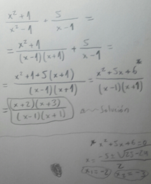 (x2+1) / (x+1)(x-1) + 5/(x-1) = extraemos denominador común: