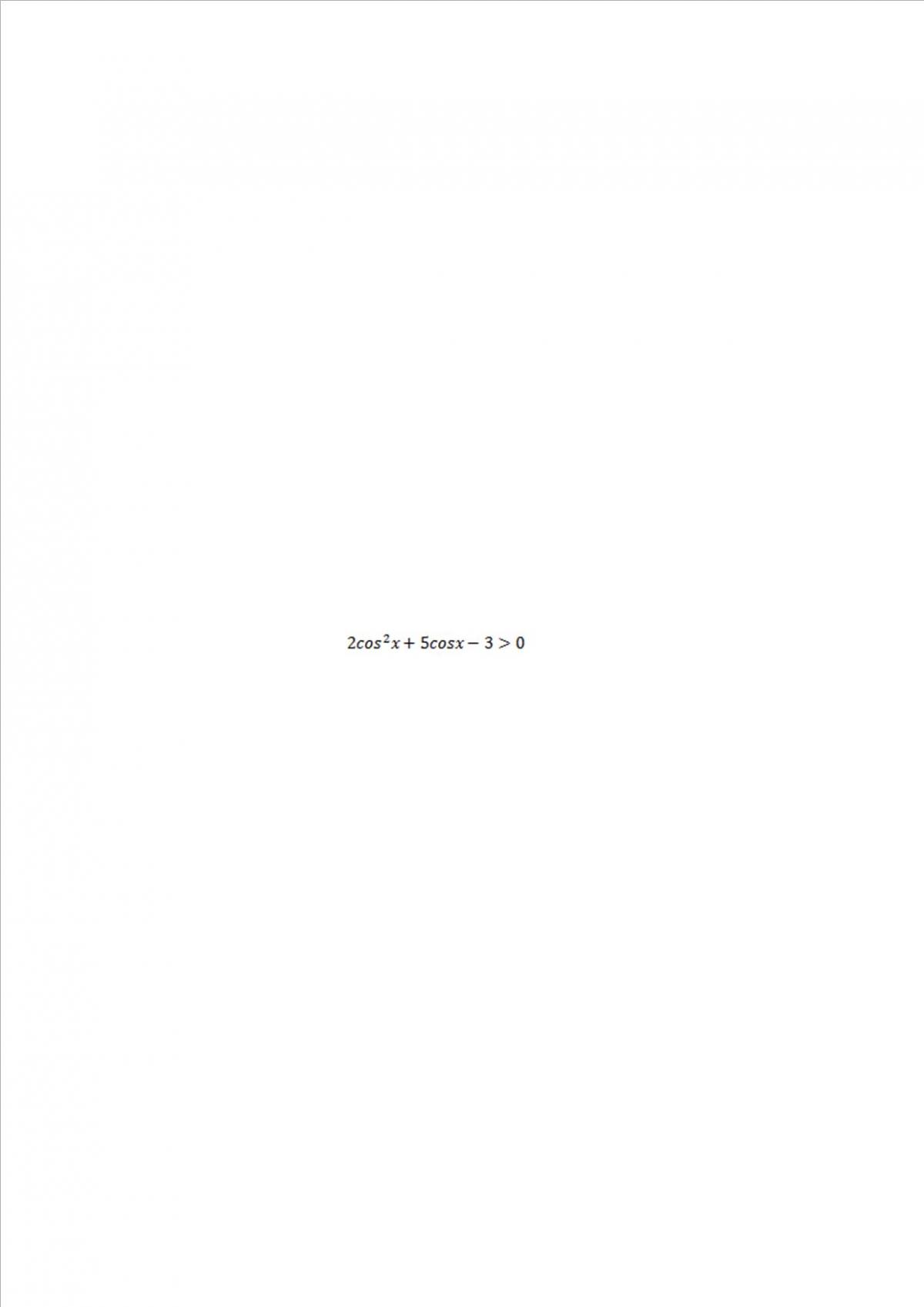 Puedes aplicar la sustitución (cambio de incógnita): cosx = w, observa que w debe tomar valores comprendidos entre -1 y 1 (*), sustituyes y queda la inecuación: