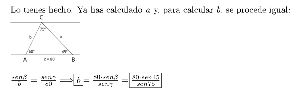 a = 80*sen60°/sen75° A partir de aqui no se como realizar el cálculo.