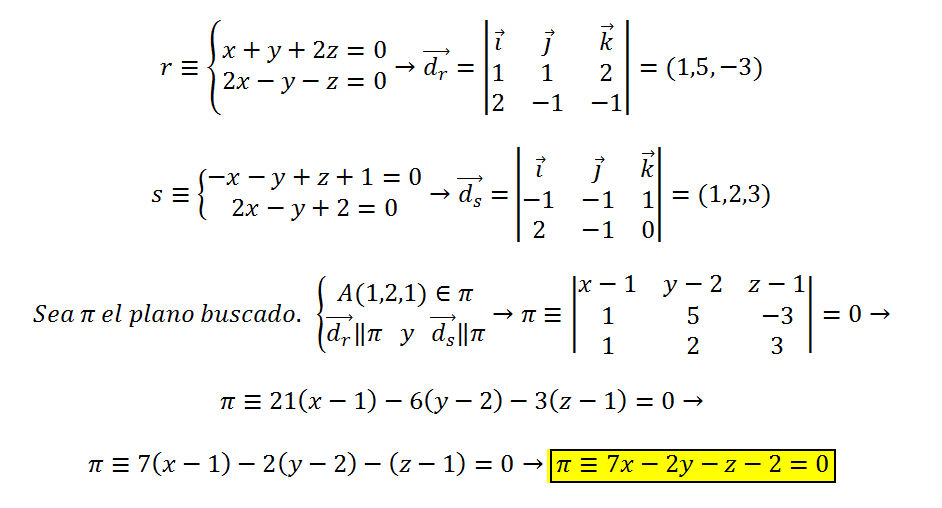 a) Pasa por A(1,2,1) y es paralelo a las rectas