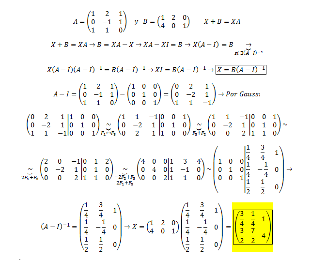 X(I - A) = -B, multiplicamos por la derecha en ambos miembros por la matriz inversa de (I - A):