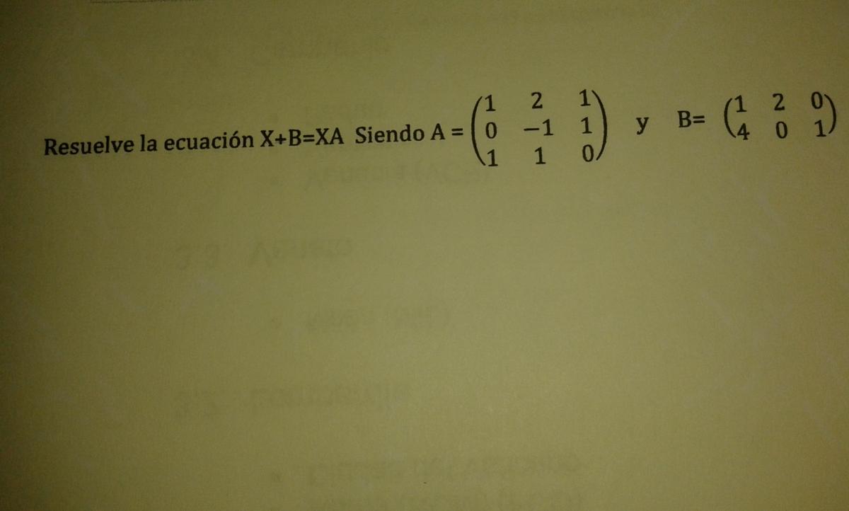 X - XA = -B, multiplicamos por la matriz identidad de orden tres en el primer término por la derecha: