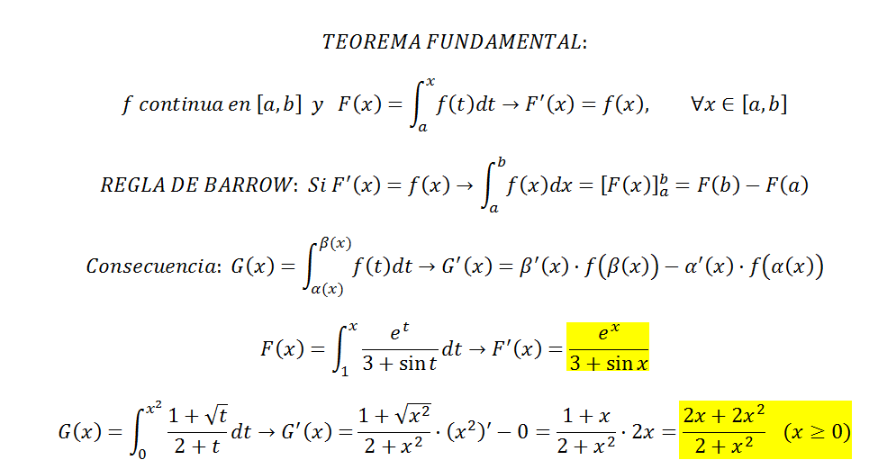luego, por el Teorema Fundamental del Cálculo Integral, tenemos que la derivada de la función queda: