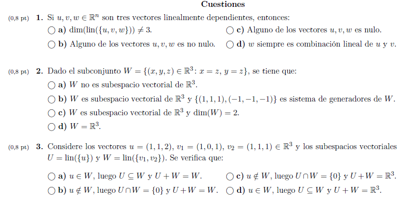 En el curso de Álgebra Lineal todos los enunciados son de Espacios Vectoriales.