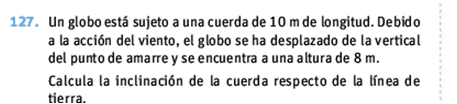 senθ = 8/10, que al componer con la función inversa del seno queda: θ = 53,13° aproximadamente.